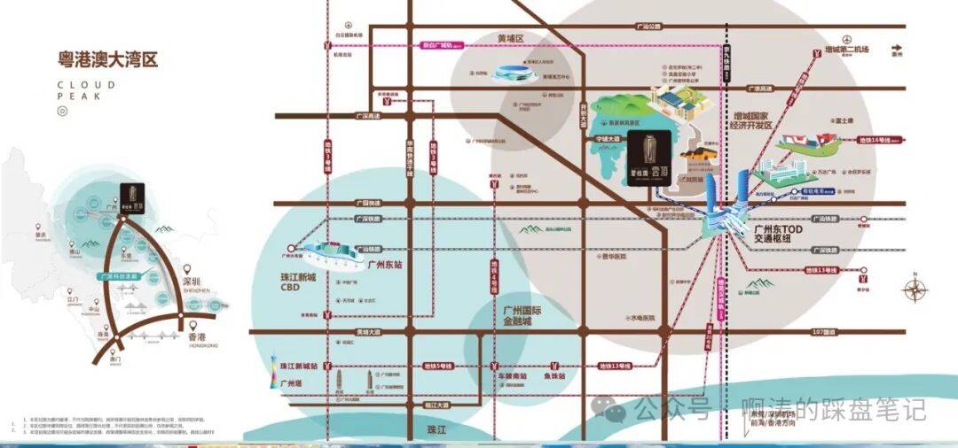 项目落位广州东进核心,承接国家级增城经济技术开发区与新塘 TOD 国际新城双重发展势能,区域产业集聚、人才导入持续,资产增值潜力巨大;九轨交汇立体交通,实现 1 小时湾区生活圈、半小时天河通勤,出行便捷高效;22 载醇熟大盘,20 万业主选择,配套完善,无需等待兑现;12 所全龄优质学校,目送式教育,满足家庭教育需求;三甲医疗 + 社区医疗,全方位守护家人健康;360° 环山生态与东方美学园林,打造高品质生态宜居环境;云系一号作品,全点式布局、纯南向电梯入户,奢居品质凸显。