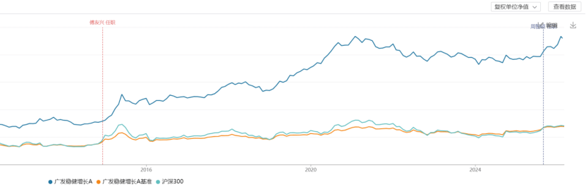 Wind数据,傅友兴目前在管2只公募产品——广发稳健增长和广发睿阳三年定开,截至2025年末,合计规模达102.76亿元。